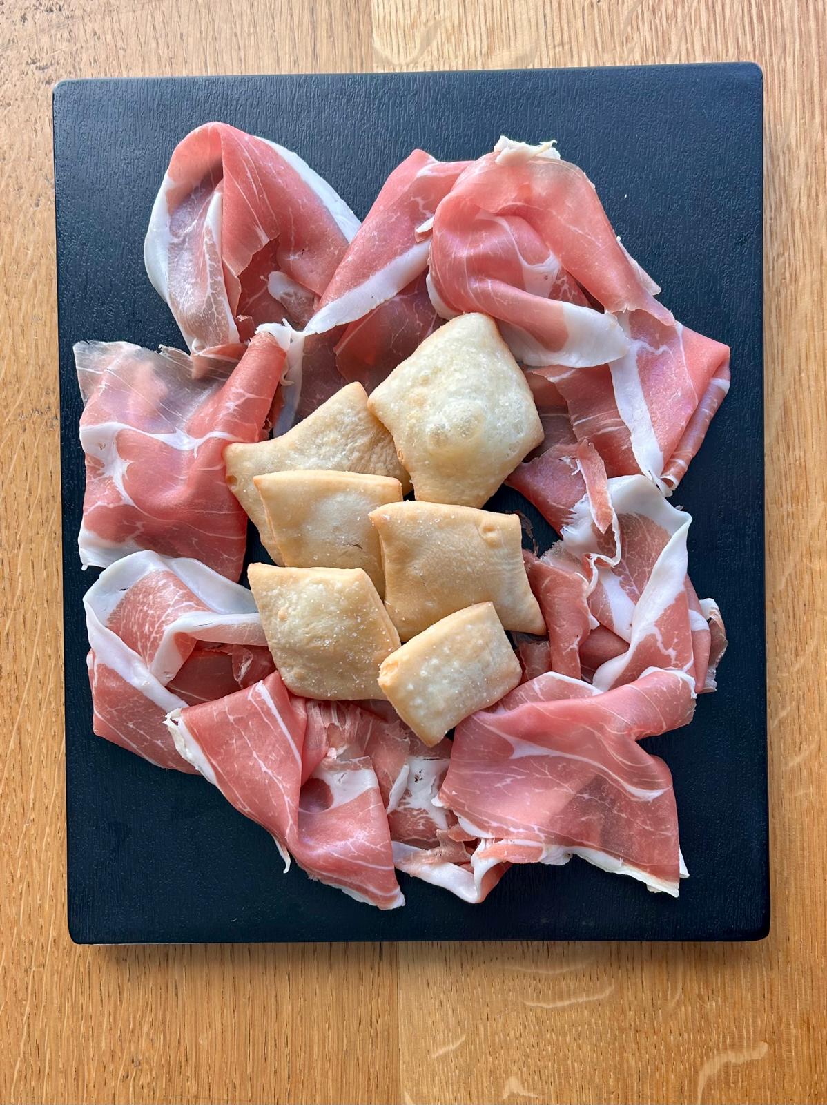 Tagliere di prosciutto di parma 24 mesi selezione S.Nicola con bocconcini di focaccia all'olio evo